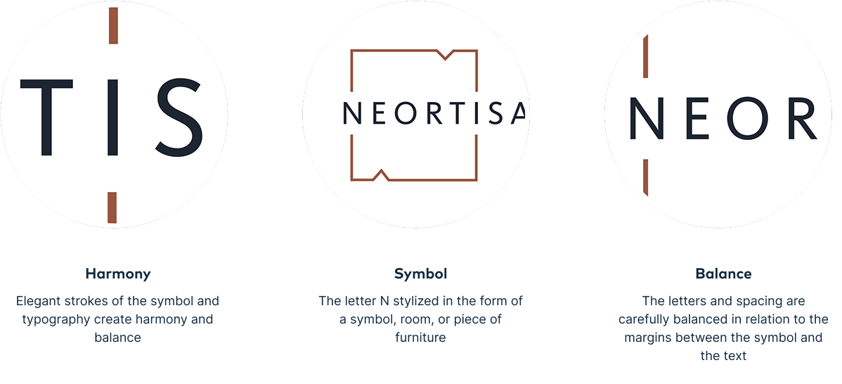 The first letter of Neortisan simultaneously represents a simplified blueprint of a room with open doors. This empty space serves as a canvas for their elegant designs and precise craftsmanship, bringing harmony and style to every corner—whether in a home, business space, hotel, or restaurant.